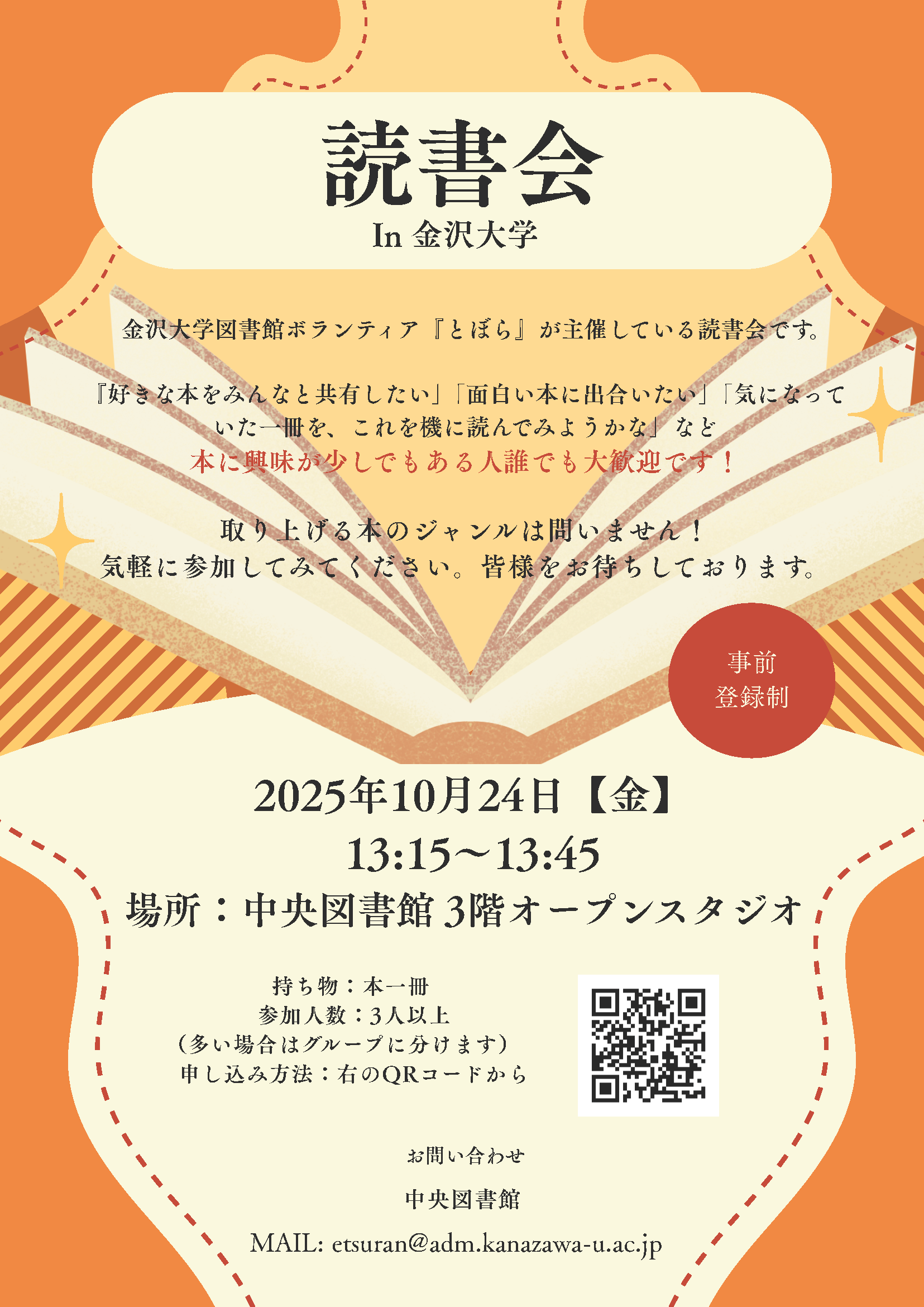 (10/24)とぼら「読書会 in 金沢大学」のご案内/ Tobora “Reading Club in Kanazawa University” Information