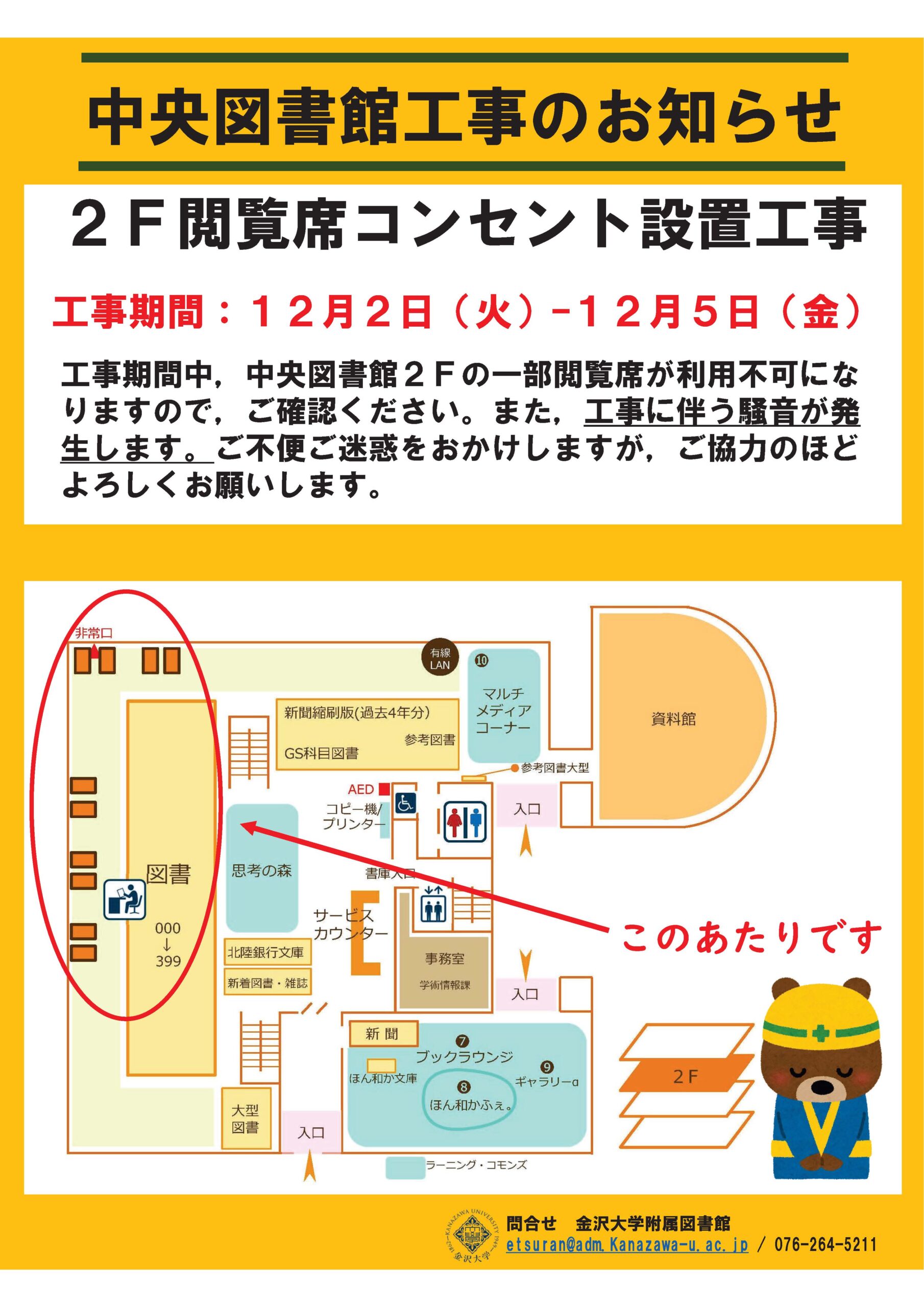 (12/2-5)中央図書館工事に伴う利用制限/ Renovation Notice, Central Library