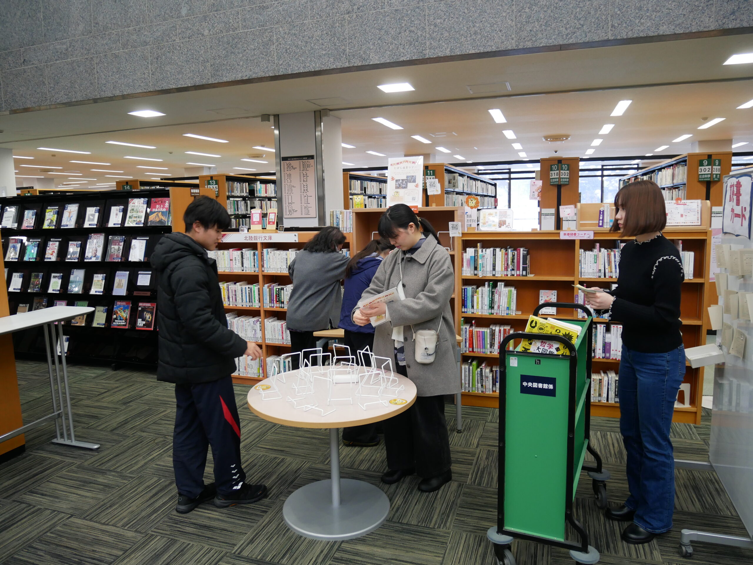 メンバー特製のポップつき。お薦めの本を手にとって、読んでみてください。