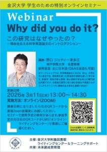 特別オンラインセミナー『Why did you do it? この研究はなぜやったの?-理由を伝える科学英語論文のイントロダクション-』