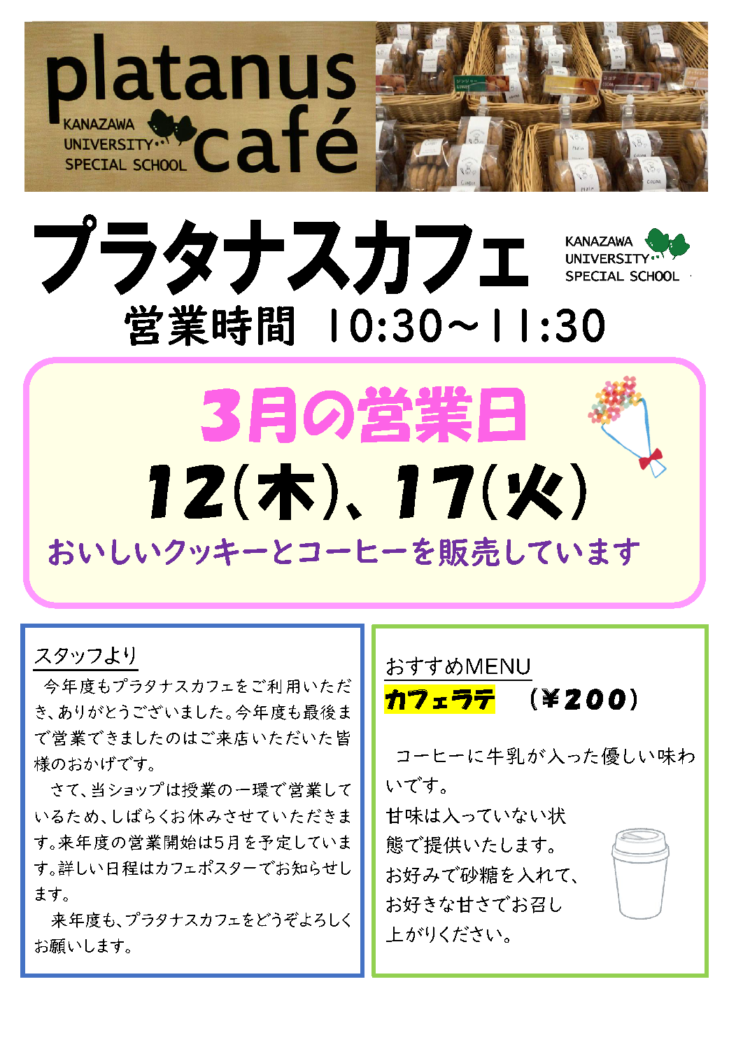 プラタナスカフェ3月の営業日 / Platanus Cafe March Business Days