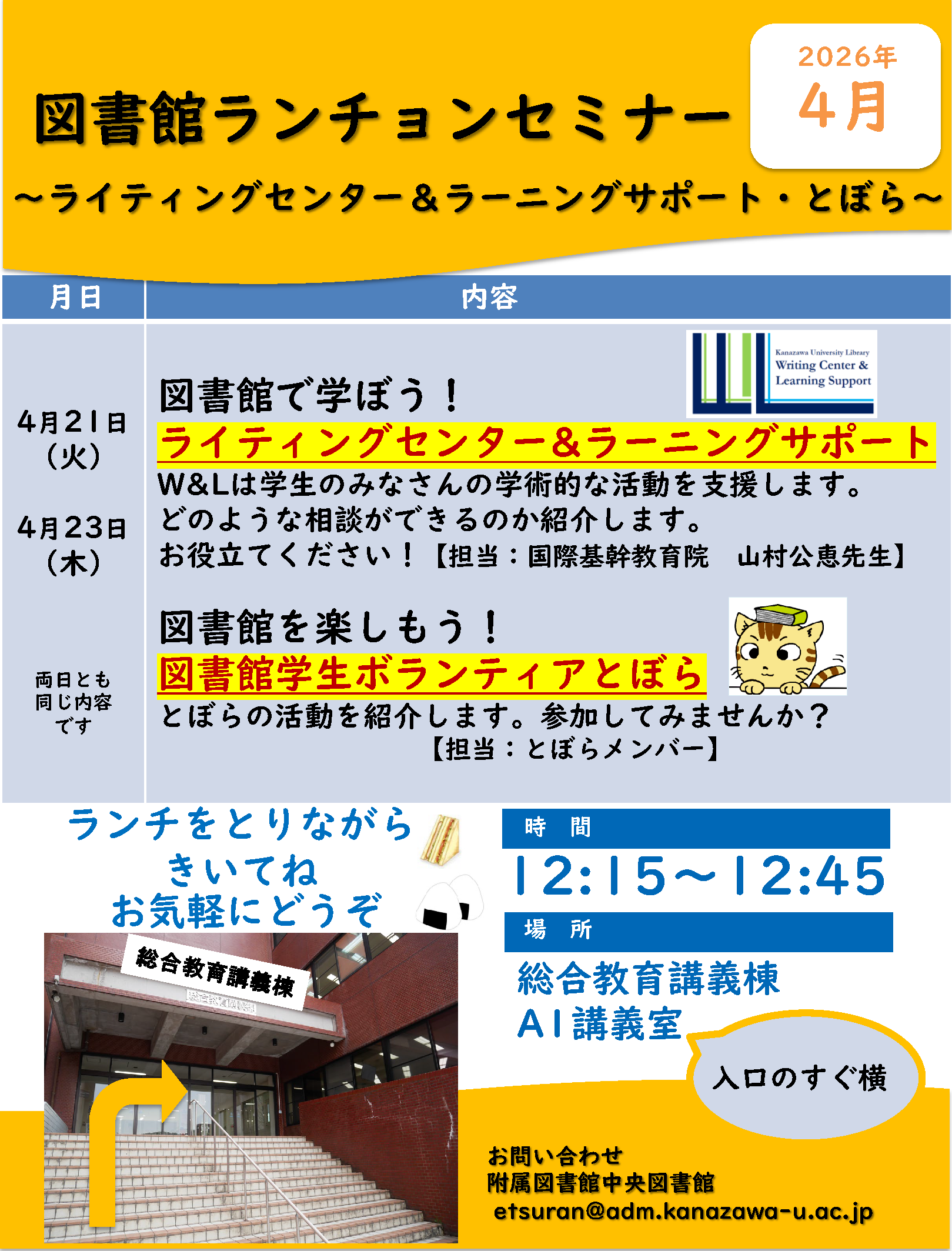 問合せ:中央図書館 etsuran@adm.kanazawa-u.ac.jp